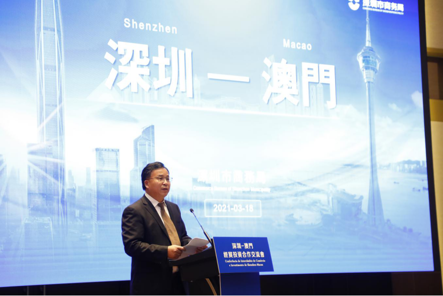 深圳市商務(wù)局局長王有明在交流會(huì)上重點(diǎn)介紹了深圳建設(shè)中國特色社會(huì)主義先行示范區(qū)的機(jī)遇、抵御風(fēng)險(xiǎn)和挑戰(zhàn)的韌性、構(gòu)建全過程創(chuàng)新生態(tài)鏈以及“引進(jìn)來”“走出去”參與全球經(jīng)濟(jì)等情況,并鼓勵(lì)澳門同胞們、企業(yè)家們共同抓住國內(nèi)大循環(huán)和國內(nèi)國際雙循環(huán)的新發(fā)展格局,助力粵港澳大灣區(qū)的發(fā)展。
