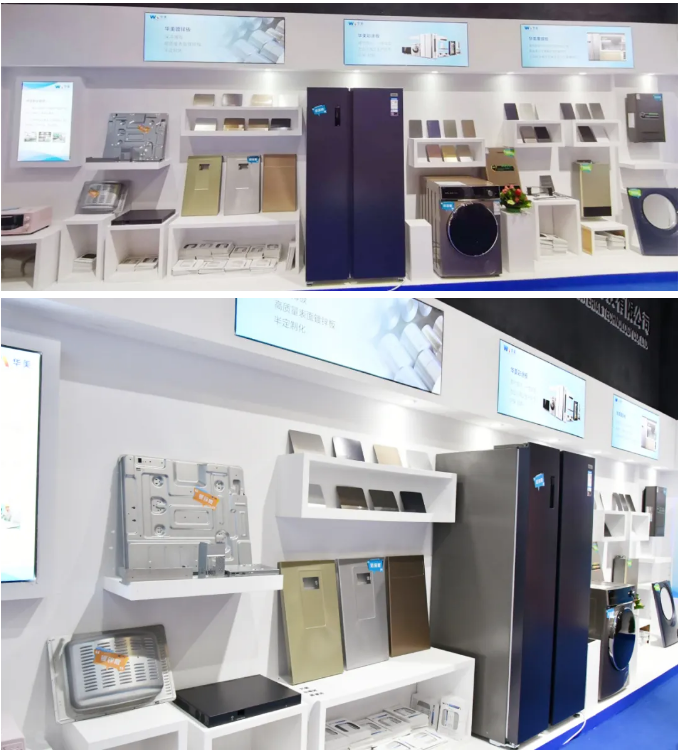 參展的家電領(lǐng)域產(chǎn)品有:家電鍍鋅薄板、彩涂板、覆膜板,產(chǎn)品應(yīng)用于家電產(chǎn)品的面板、側(cè)板、背板等。本次參展將品牌家電與華美科技的產(chǎn)品樣片相結(jié)合展示,更好的詮釋了華美科技“樂享未來華美生活”這一使命。